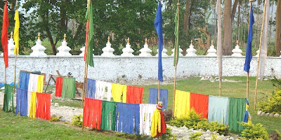 中心供養佛學院袈裟,由 崑列給琛堪布代表供養,及寺院舍利塔圍牆完工情況。